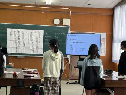 6年生の音楽の時間です。ふれあい祭りで歌う歌の歌詞の意味を考えて、自分たちの表現をどうしたいか話し合っていました。