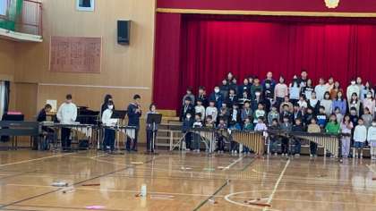 最後はみんなで歌う「ひまわりの約束」です。先生方も伴奏や歌で参加しています。代表委員会の人が上手に締めくくってくれました。