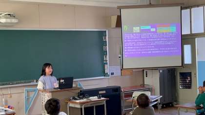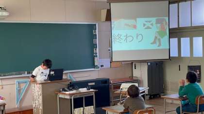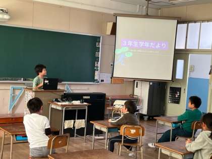 3年生が国語で学習した「3年生学年だより」の発表をしました。精一杯をテーマに、勉強、整理整頓、掃除などについてスライドを使って2年生に向けて話しました。