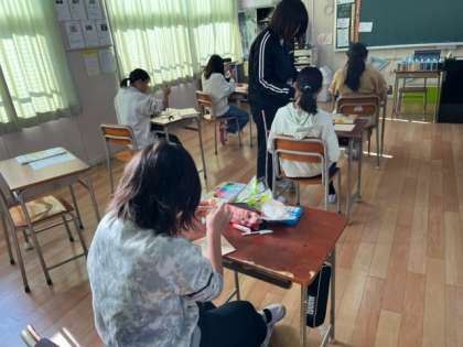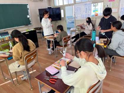 6年生の図工の時間。いろいろなポーズを取る人の立体製作をしていました。さて、どんなシーンになるのかな?