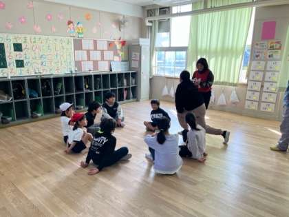 今日はなかよしタイムです。ハンカチ落としをしている班がありました。走ってはいけないそうです。