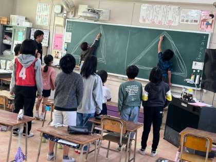 こちらの班は、できるだけたくさんの三角を描くゲームです。初めてです。