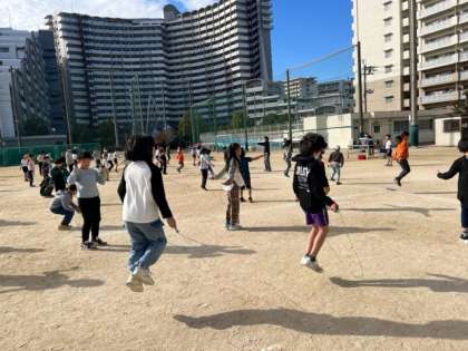 今日から体力作りのなわとび運動「ぴょんぴょんタイム」が始まりました。寒さに負けずに頑張ります。