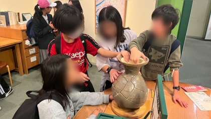 難波宮の発掘体験コーナーです。考古学者になって調査開始です。