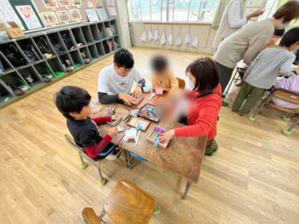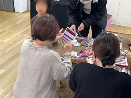 今日は、地域の生涯学習ルームの皆さんが作品作りを教えてくださいました。1年生は「クリスマストレー」です。