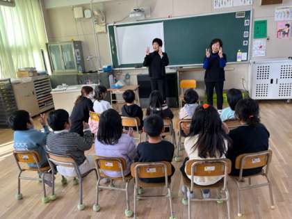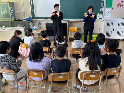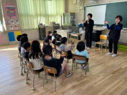 「いちじく、にんじん、さんしょ に しいたけ、ごぼうでポン」と言う手遊びを教えていただきました。