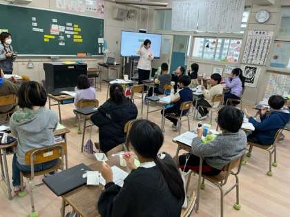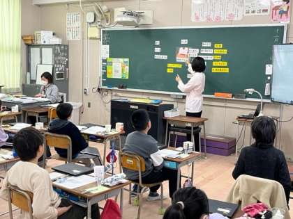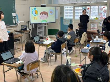 今日は、歯と口の健康教室です。4年生は、歯磨きとよく噛んで食べることの学習です。咀嚼チェックガムを使って噛む力を調べました。