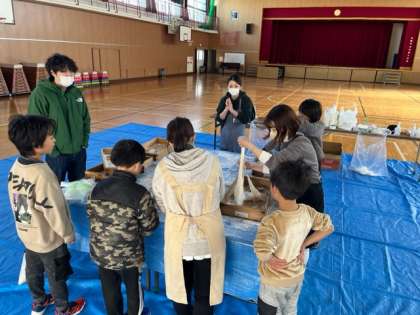 参加した子どもたちは、おもちをついたり丸めたりとお手伝いを頑張っていました。