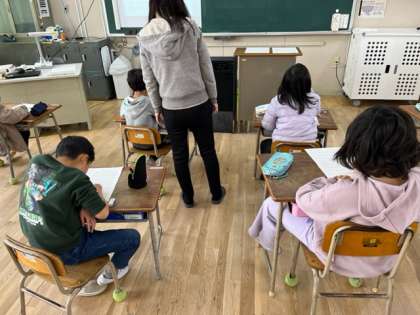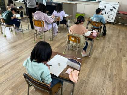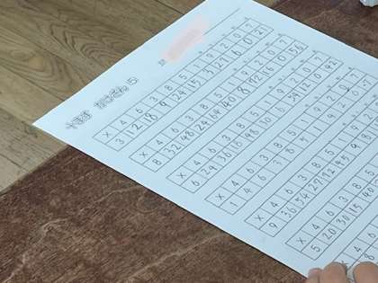 2年生が、九九のプリントをしていました。90問を素早くな確実に解きます。よく覚えていますね。