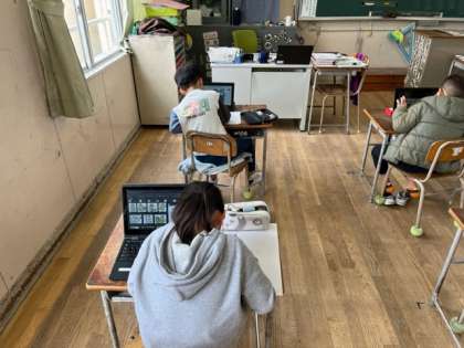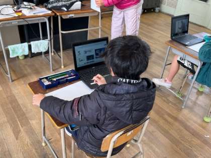 3年生が図工の下絵を描いていました。乗ってみたい怪獣を考えています。出来上がりが楽しみです。