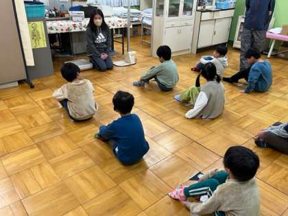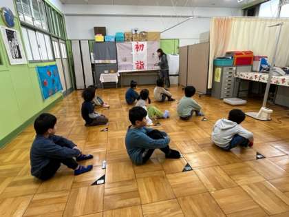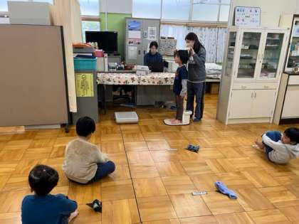 1年生は3学期の発育測定です。みんな大きくなってるね。保健室での過ごし方は花丸です。