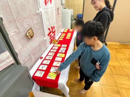 測定が終わったら、保健室の先生の手作り「けんこうかるた」をします。今年健康で楽しく過ごしてね。