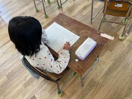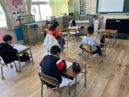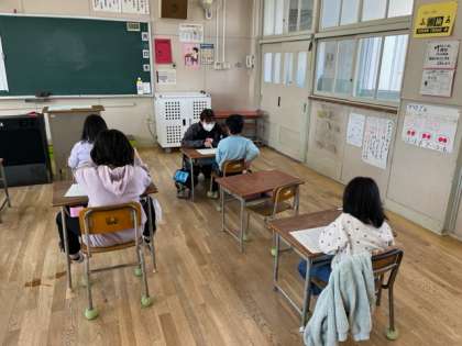 2年生が国語のテストを受けていました。小の月は「にしむくさむらい」よく覚えてるね。