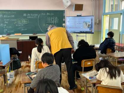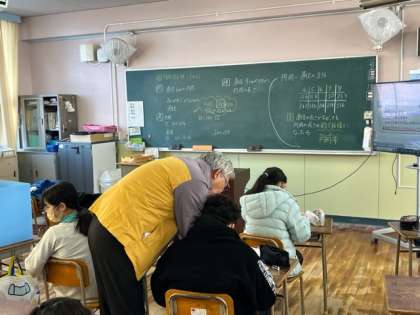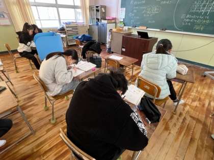 5年生は「円周率」を使った問題に取り組んでいました。円周率3.14を使って解く応用問題です。かなり真剣ですね。