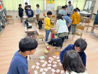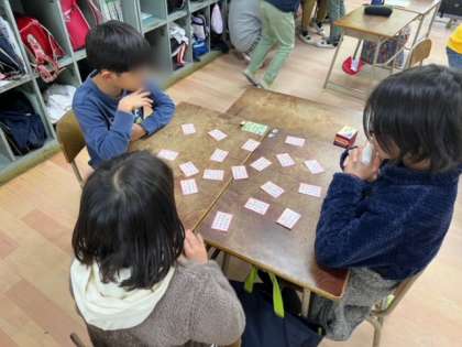 第2回戦は40枚に増えました。下の句を探すのもたいへん。覚えている子は早いです。
