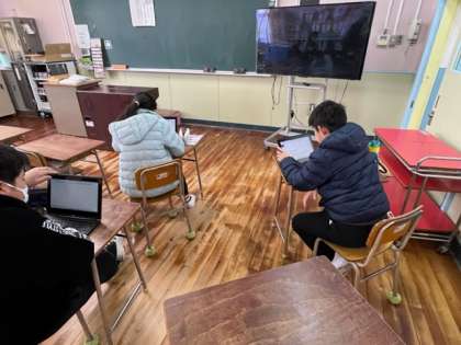 5年生は算数のまとめで「デジタルドリル」をしていました。金のトロフィーをたくさん取るのが目標です。
