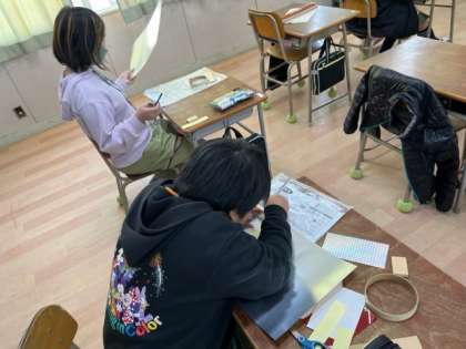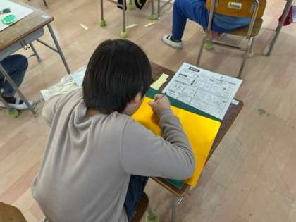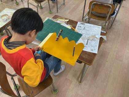 4年生が図工の時間に「光る作品」を作っていました。クラフトナイフを使って、ていねいに切り抜いていました。