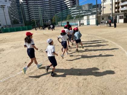 今日は2.4.6年生のランランタイムです。ペースを崩さないように走ります。