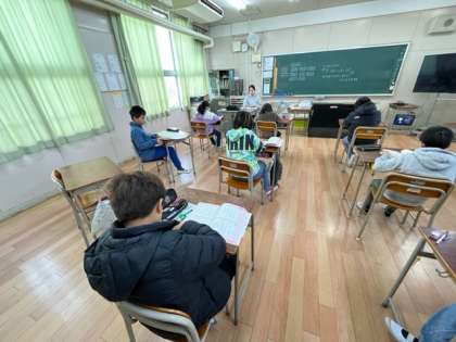 8.9.10級を受ける子は9時30分まで自習です。静かに学ぶ時間が流れます。