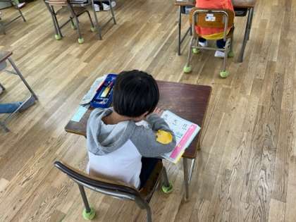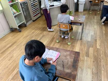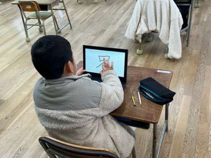 2年生の子はデジタルドリルで書き順を確認していました。1年生もドリルで最後まで学習しています。