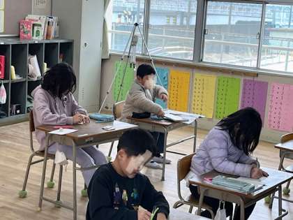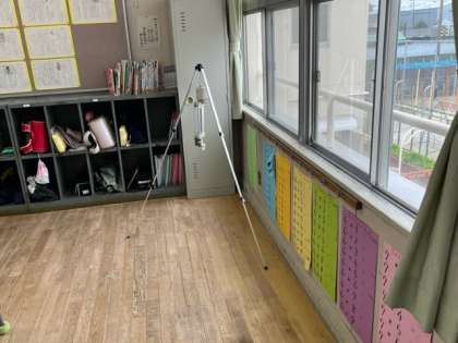 今日は、教室の二酸化炭素濃度の測定です。2年生の教室に機械を設置しました。