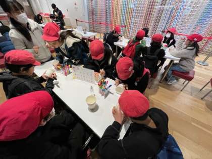 オリジナルのカップヌードルのつくりかたを教えてもらい、日付けとイラストを描きます。