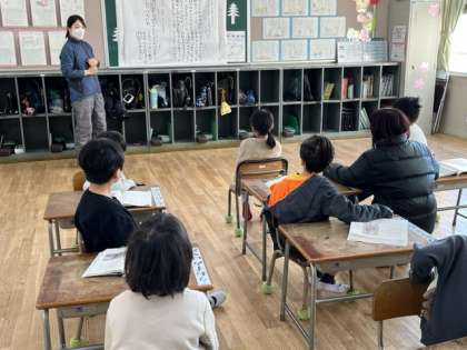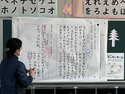 1年生は説明的文章「子どもをまもるどうぶつたち」の内容理解をしていました。オオアリクイとコチドリの知恵の違いを見つけます。