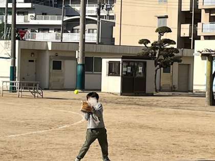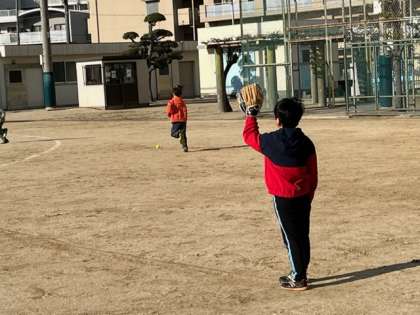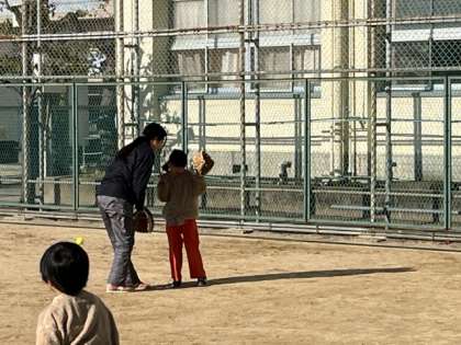1年生が大谷翔平選手のグローブを使って遊んでいました。豪速球がすごい!