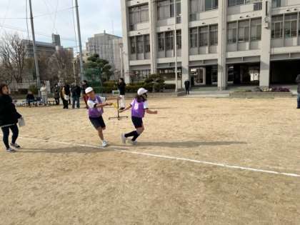 港中学校のグランドから外周に出て1周します。長い距離ですがタスキをつないでがんばりました。