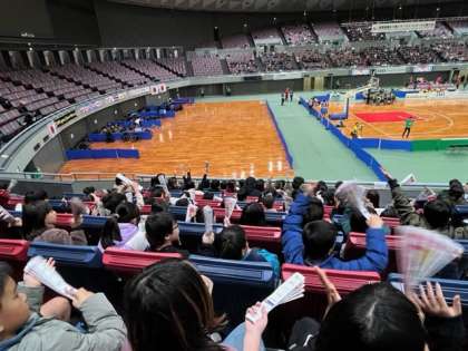 ハーフタイムで応援ダンスをしました。盛り上がりますね。