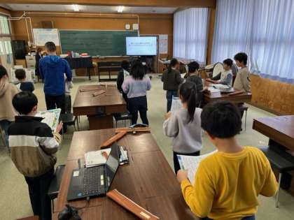 3年生は「パフ」合奏が始まります。初めてにしては上手だね。