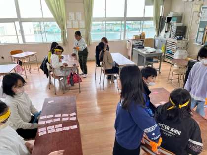 参観日ありがとうございました。これは6年生の百人一首の様子です。
