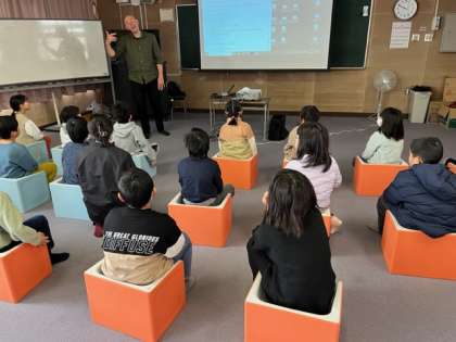 1.2年生はとても楽しそうです。英語で色や天気、動作をたくさん覚えました。歌とても上手になりました。