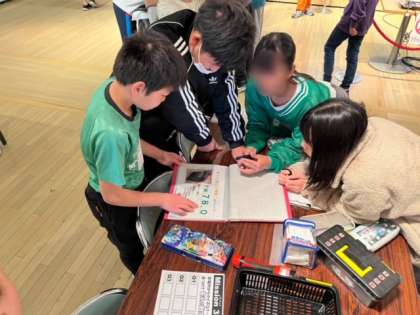 いろいろな場所にある謎を解いたり、タブレットで動画を見て解いたりします。チームワークが大切なようです。