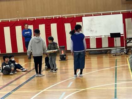 6年生をからプレゼントをもらい、みんなからは感謝の寄せ書きを渡しました。