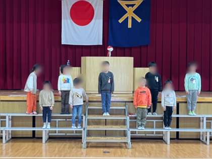 1年生が講堂で、来年度の1年生を迎えるための練習をしていました。大きな声でとても上手です。