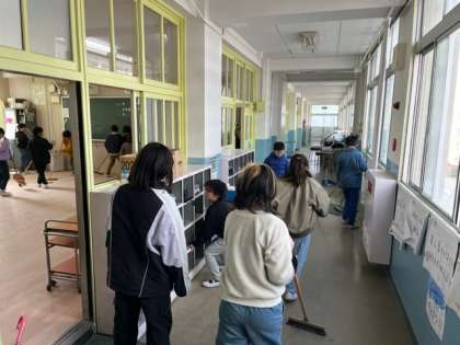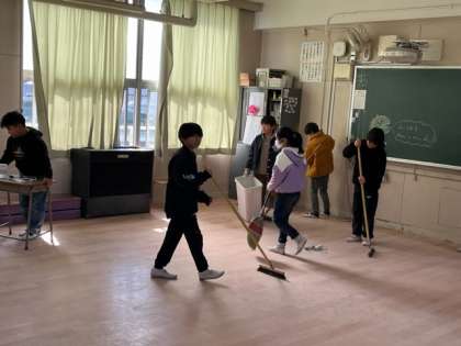 1年間お世話になった教室をきれいにしているクラスがあります。次の学年の子たちのためにピカピカにしています。
