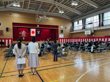 今日4月8日は、着任式、始業式そして入学式を行いました。着任式では、新しくお見えになった教職員の皆さんと初めて会いました。始業式では、今年1年間楽しい日々にしましょうと言う話を聞きました。