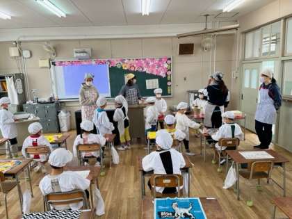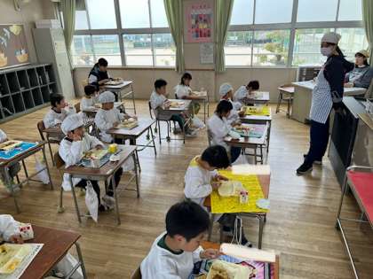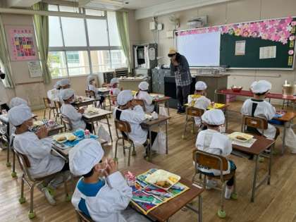 配膳は2年生がしました。今日は、入学お祝い献立です。たくさん食べてね。