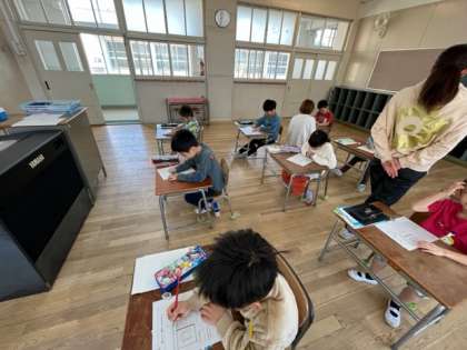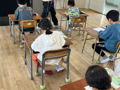 2年生は「自己紹介カード」を買いていました。漢字をがんばる。算数をがんばる。今年はどんな自分になりたいのかな?
