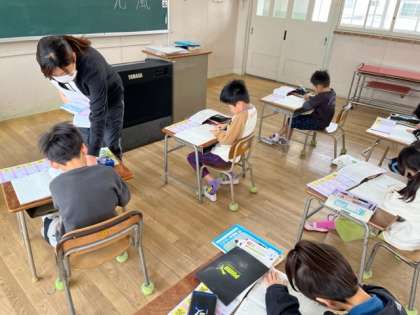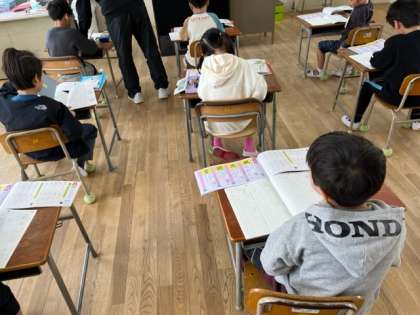 2年生が新出漢字「嵐」を書いていました。形が難しいですが、ゆっくりていねいに頑張っていました。