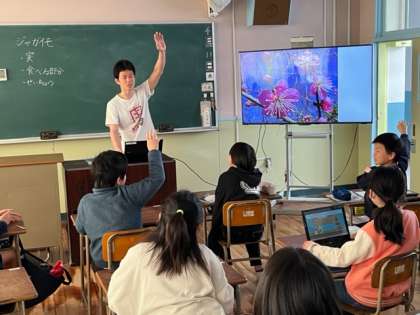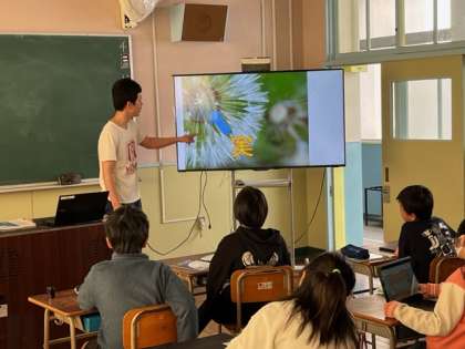 5年生は理科の時間に春の草花を学習していました。タンポポの綿毛の中には実がなっています。アブラナはどこかに咲いていましたか?