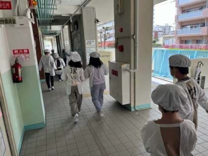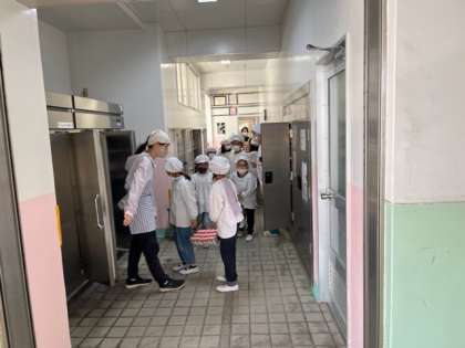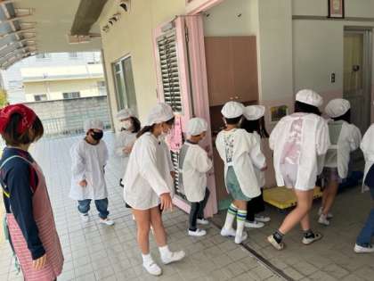 みんなで給食当番がんばります。今年度もいっぱい食べて給食調理員さんを笑顔にしましょう。