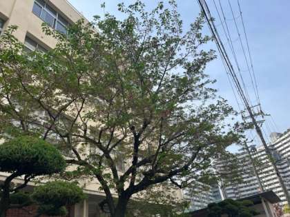 学校内に春を見つける