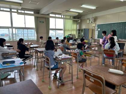 各班ごとに自己紹介タイムです。初めて同じ班になる子もいます。