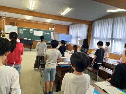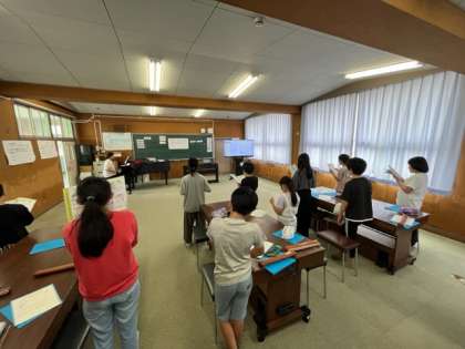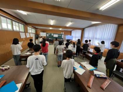 6年生が音楽の時間に「ペガサス」と言う新しい曲です。高音のきれいな曲です。