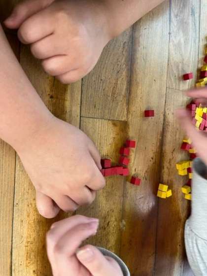 積み木遊びではありません。立体の体積を考えるために実際に立体を作っているところです。