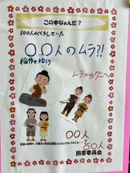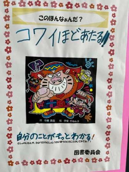今日4月23日は「子ども読書の日」です。たくさん本を読んでね。これは、図書委員会の人が作ったポスターです。