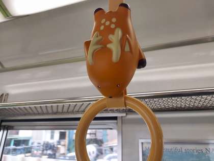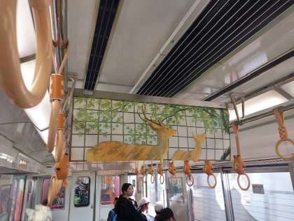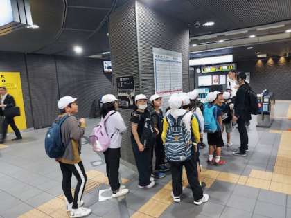 4年生は社会見学で環境事業局に行きました。行きの電車が奈良仕様でした。