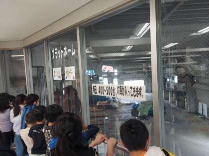 会議室で話を聞い後、パッカー車がゴミを運んでくるプラットホームを見ました。次から次へとパッカー車が来ます。